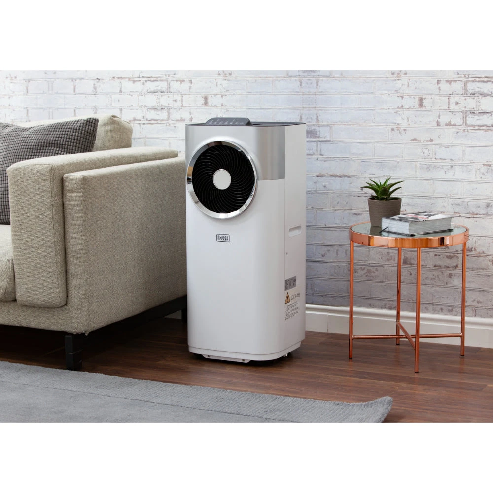 This versatile air conditioner can be used as a cooler, dehumidifier and fan for all year round use. Choose between a high, medium or low speed airflow setting to maximise comfort and adjust the vertical louvre to redirect cool air throughout the room. The soft touch LED controls are easy to use when adjusting between settings and temperatures of 18-32 degrees, with remote control operation that allows you to set the 24 hour timer for flexible and efficient operation. The carbon filter helps to eliminate unpleasant odours and bacteria from developing to ensure fresh and clean airflow is distributed. The window ventilation system ensures collected water naturally evaporates through the window venting hose provided. With a 12,000 BTU output and a R290 refrigerant, this air conditioner uses Class A energy efficiency for optimum performance with a low environmental impact and running cost. The 360 degree castor wheels allow portable manoeuvring around the home.