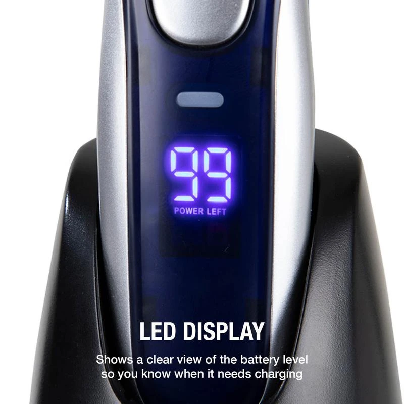 Create a professional quality cut at home with the Carmen Signature Men’s Cordless Hair and Beard Trimmer. Features 10 cutting lengths from 3-32mm to suit every style, providing ultimate versatility for face and body grooming. The advanced, rechargeable battery provides up to 60 minutes of cordless runtime, for a great shave without restrictions. Superior performance stainless steel blades provide long-lasting sharpness for a pristine finish every time. Its ergonomic and slim design is the perfect fit for your hand so you can comfortably and efficiently trim your face or body. The large LED display shows a clear view of the battery level so you know when it needs charging, with easy-to-read numbers for added convenience.