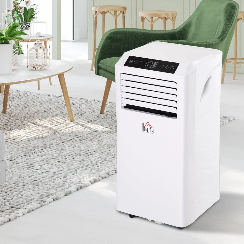 Beat the Summer heat in the most effective way possible, say hello to this 1080W mobile air conditioner from HOMCOM. A small and compact design which can fit into small and tight spaces easily, it features three functions over two speeds: cooling, dehumidifying and ventilating, allowing you to be in control and set to a mode which best suits you. A built-in 24 hour timer allows you to set the unit to run until a certain time perfect for when you want to use it getting to sleep but don’t want it on as you wake up, with its auto shut-off function preventing electricity being wasted when the tank is full. Remote control included, 2 x AA batteries required but not included.