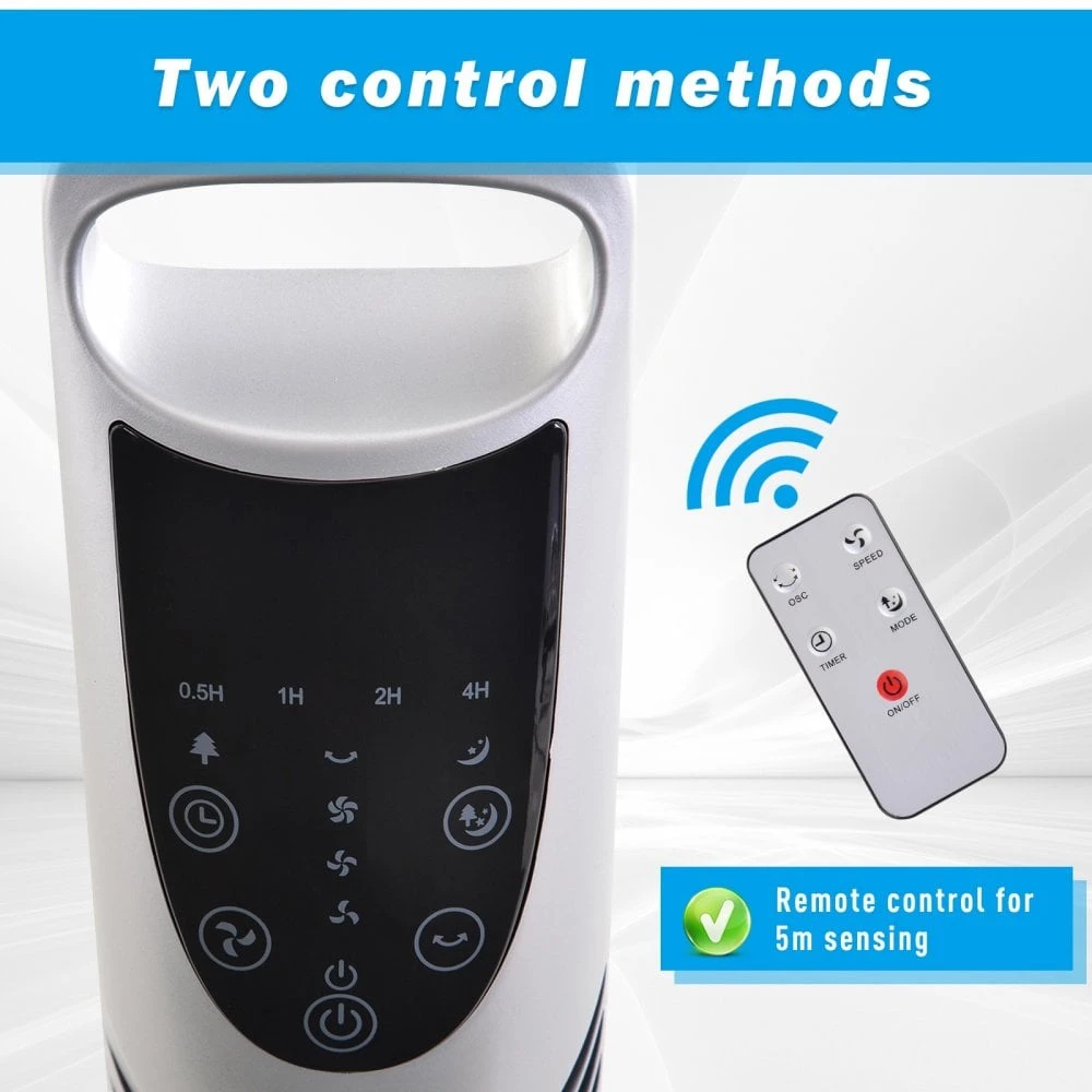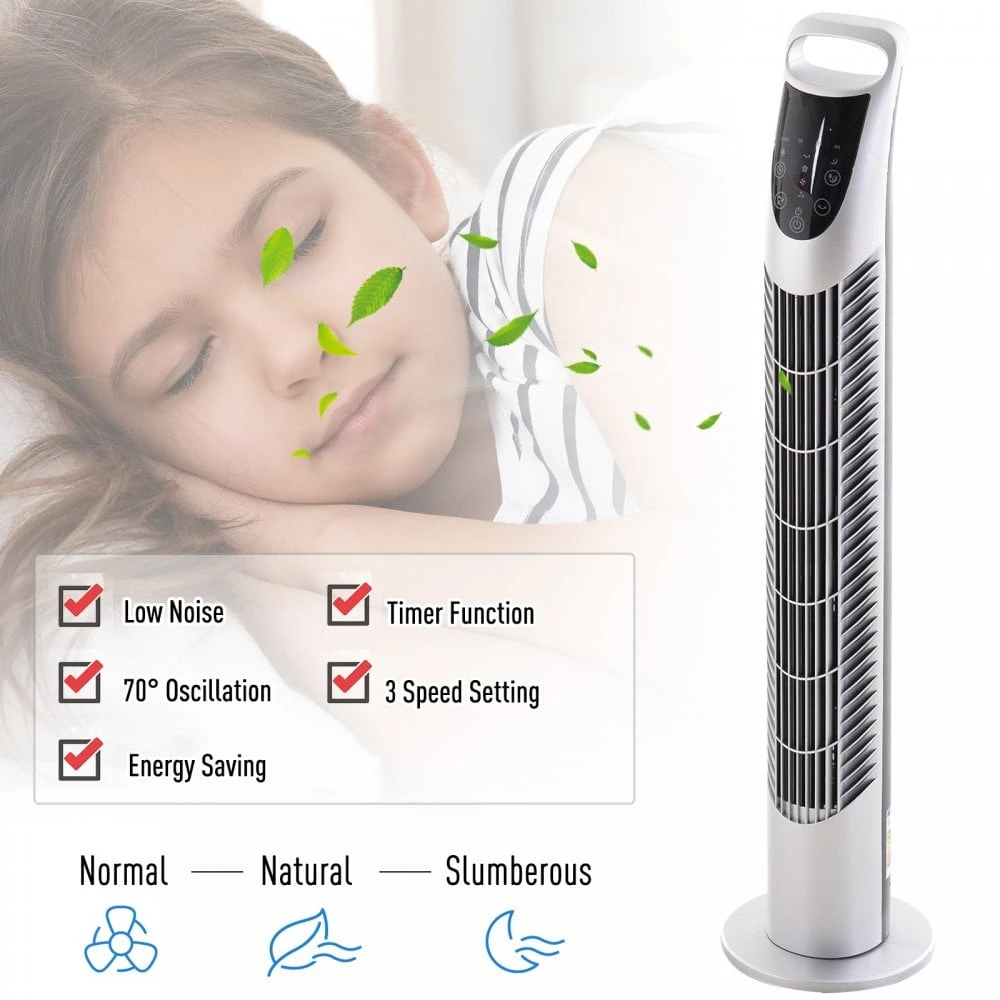 Stay comfortably cool as the days and nights get hotter with this tower fan from HOMCOM. The multi-setting mode allows you to choose between three different speeds and three types of wind (natural /normal/sleeping) for a better cooling experience with the standing fan. A built-in timer function allows you to use in the sleeping. Oscillating fan is a must for anyone working in offices or are refined to small and stuffy spaces.
