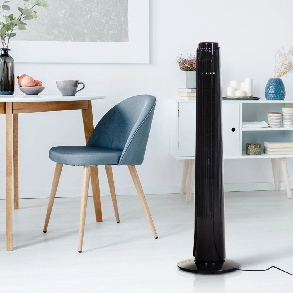 Stay comfortably cool during those hot Summer days with this tower fan from HOMCOM. Made into a tower design, slim and narrow, the oscillating fan is able to fit into tighter spots with ease. The 70° oscillation function direct the air flow where you need it to. A built-in 7.5 hours timer function, the standing fan will auto stop whilst you are asleep for safety and to save electricity. A must for anyone working in offices or are refined to small and stuffy spaces.