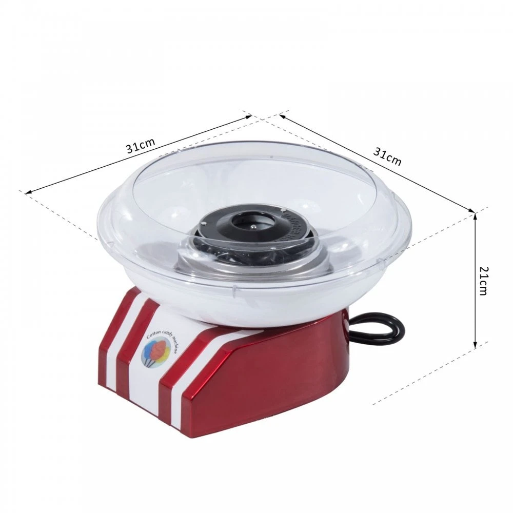 This professional candy floss maker is a great gadget to have around the house, make delicious candy floss in just minutes. Its overall dimension is 31L x 31W x 21H (cm). By adding a spoon full of sugar and as the centre spool turns round you will be collecting the candy floss on the bamboo sticks within minutes. A great item to have for yourself or even when entertaining your friends and family.