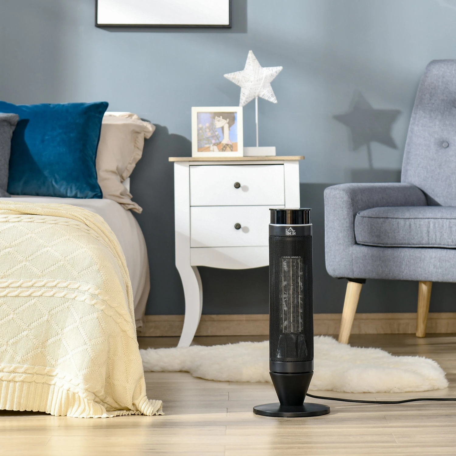 - SAFE: This heater will switch off if overheated or toppled over.