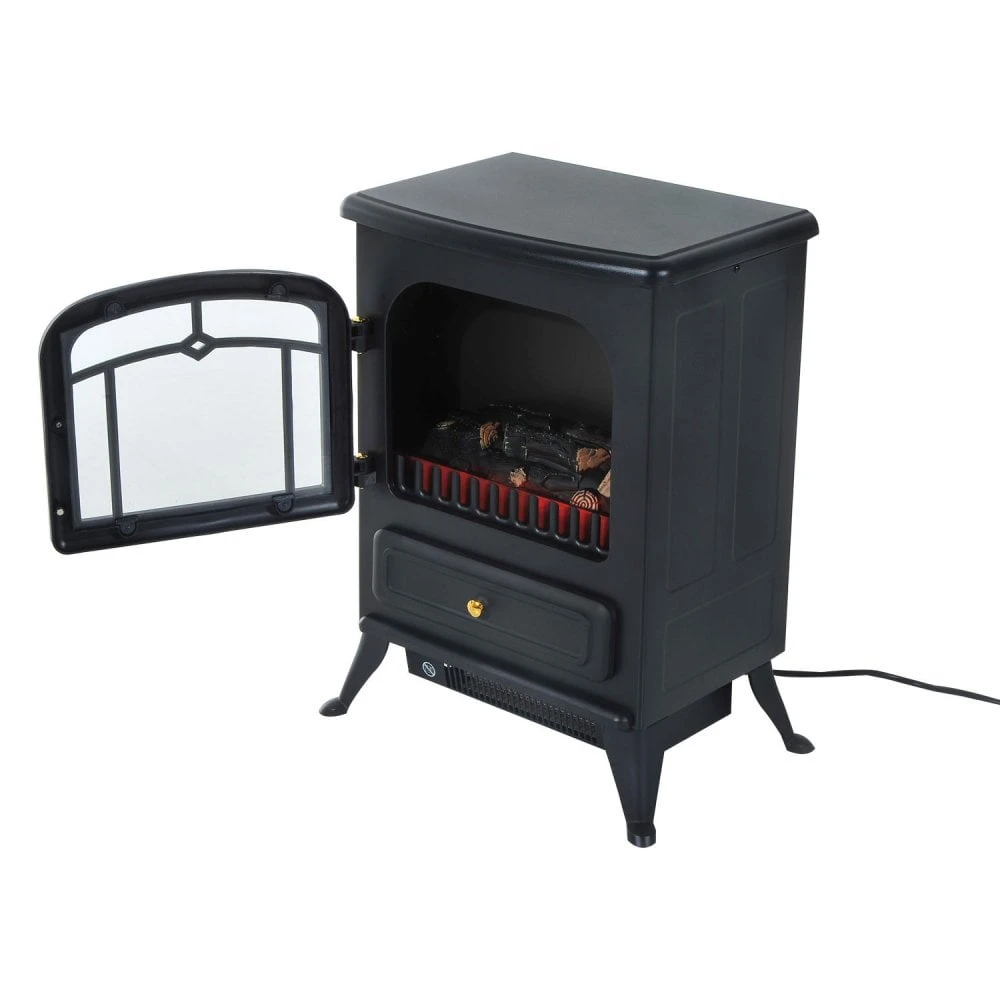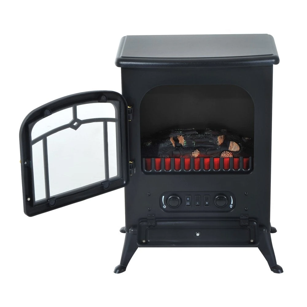 This HOMCOM freestanding fireplace is designed with a feel of a real wood burning fireplace. It displays a realistic wood burning effect using light, made from steel in a compact design with a glass window. The temperature can be set using the controls and the thermostat ensures the temperature is kept steady and a level comfortable for you, the power can be adjusted at two levels of 950W and 1850W. It has a safety thermal cutoff as a safety feature. This is a great vintage design and would compliment any home and be part of the décor.