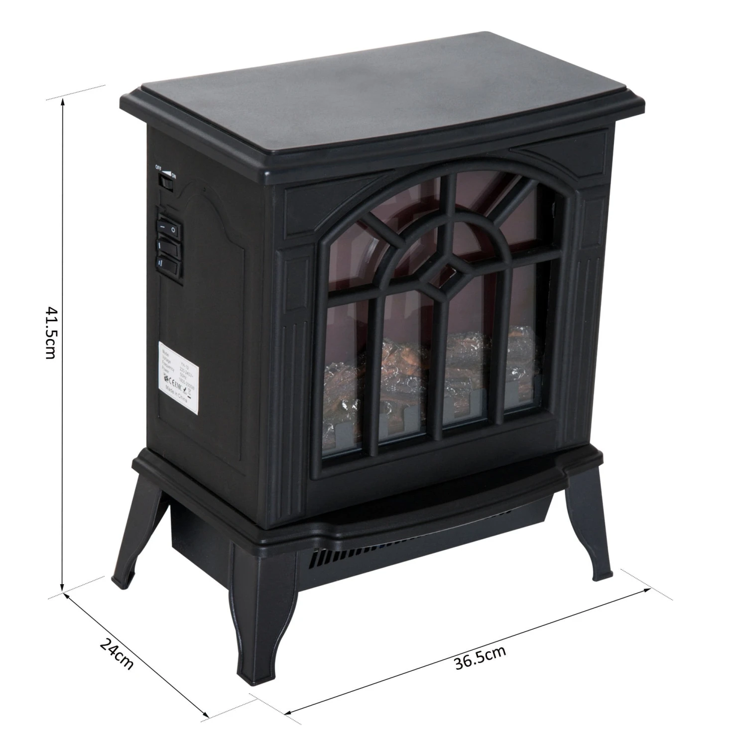 This freestanding fireplace from HOMCOM comes with 2 heat settings( 900W/1800W) and a realistic LED wood burning flame effect which can be controlled independently to the heat functions. Easy to operate by controls on the side of the unit, it brings warm glow with a fantastic visual illusion, and together with the heat function to warm up your room within minutes. The fireplace features a thermal cut-off system for overheating for your safety. This is a great looking firplace to suite any room decor.