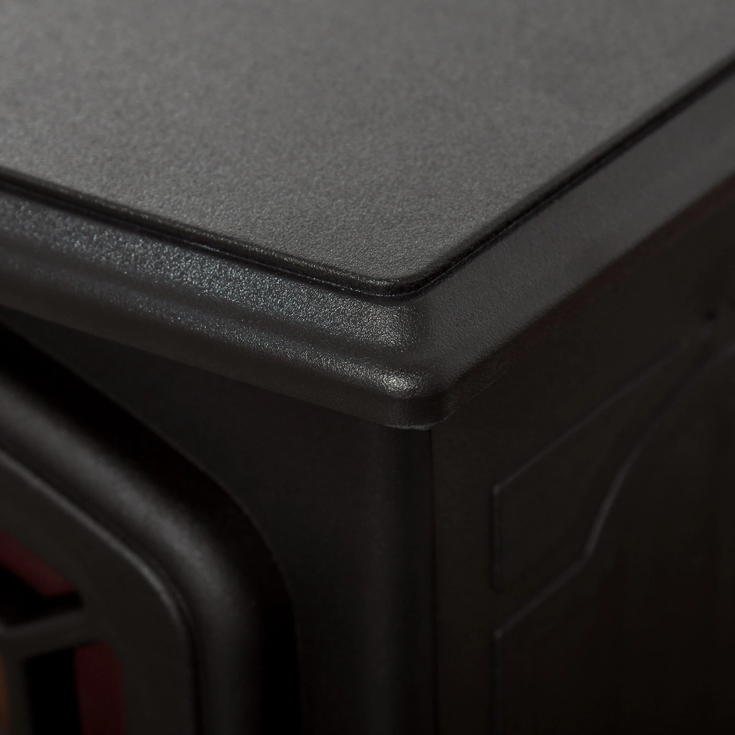 - Freestanding electric fireplace with transparent tempered glass front for better viewing