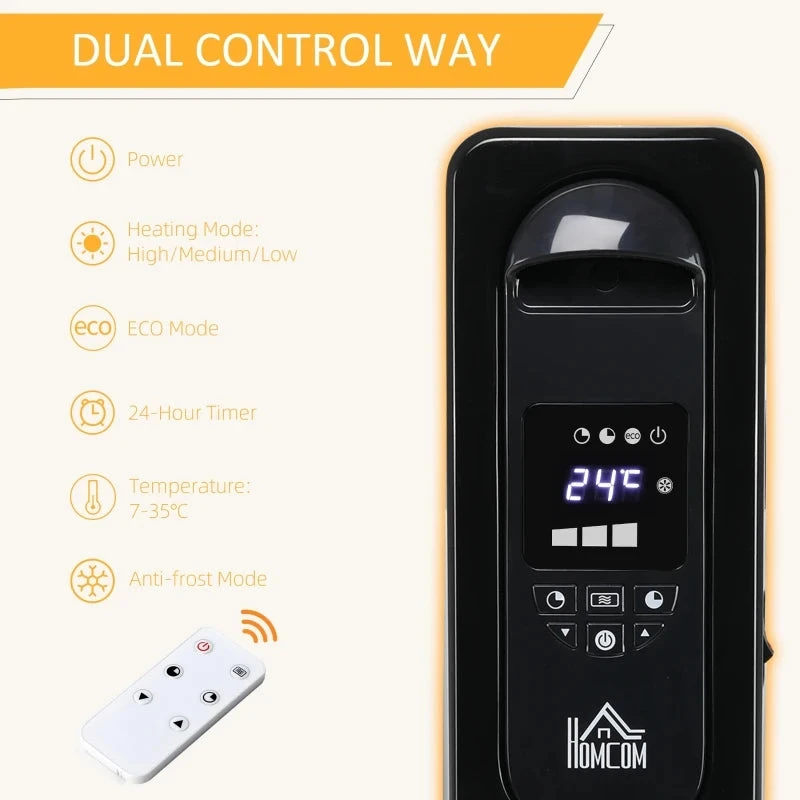 When the weather starts to turn icy, you will need this oil-filled radiator heater. Our Home Savers oil-filled radiator with 7 heating pipes is perfect for keeping your bedroom, living room, home or office warm. Plus with three power settings, low, medium and high, you can find your preference temperature with total ease. The 360 degree wheels at bottom for easy movement. Don’t let your fingers and toes freeze and trust in our oil heater to deliver warm heat from any room in the house. Features: 3 heat settings and ECO mode for flexible heating efficiency With 7 heating fins and 3 heat output settings to effectively heat rooms A 24-hour timer also allows you to switch the radiator on or off when you desire The temperature can be adjusted between 7-35+C to make body feel comfortable The easy-to-use digital display and remote control allow you to set any functions 4 castors plus a handle for easy moving, – Built-in overheat protection and tip-over switch ensure the radiator instantly switches off Cable organizer for tidiness without worries of wire entanglement Specification: Colour: Black Material: Metal, Plastic Overall Dimension: 36.5L x 24W x 64Hcm Power: 1370-1630W Temperature Range: 7-35+C Timer: 24H Suitable Average: 9-15+m Working Noise: 0dB Power Cable Length: 1.5m Rated Voltage 220-240V, 50/60Hz, – Rated Current: 10.4-11.3A Certification: UKCA+CE(LVD, ROHS, ERP, EMC) Item Label: 820-265V70BK