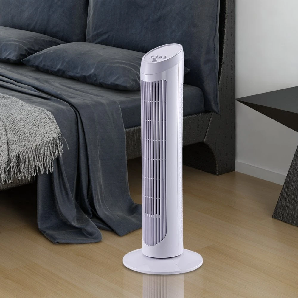 The HOMCOM tower fan offers a more effective way to circulate air around a room. 3 speed settings, selected by push-button controls, allow you to tailor the airflow perfectly for your needs. This elegant fan is ideal for any kitchen or living room and features breeze with a space saving design.