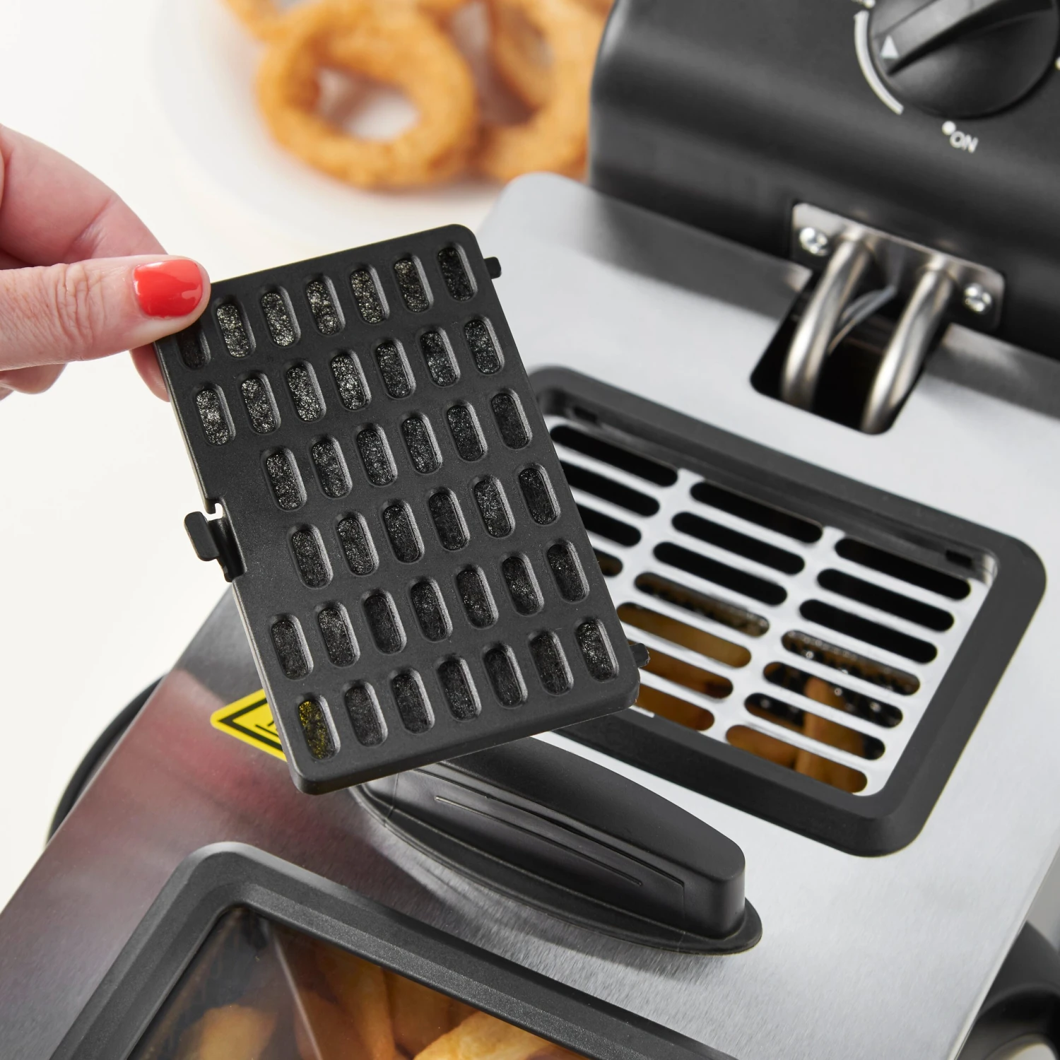 Change the way you cook at home with this 3 litre deep fat fryer. Made from stylish and durable stainless steel, the home fat fryer offers years of use and can cook up a wide variety of family favourites, from chips to chicken. For ease of movement, the countertop fryer also features carry handles.
