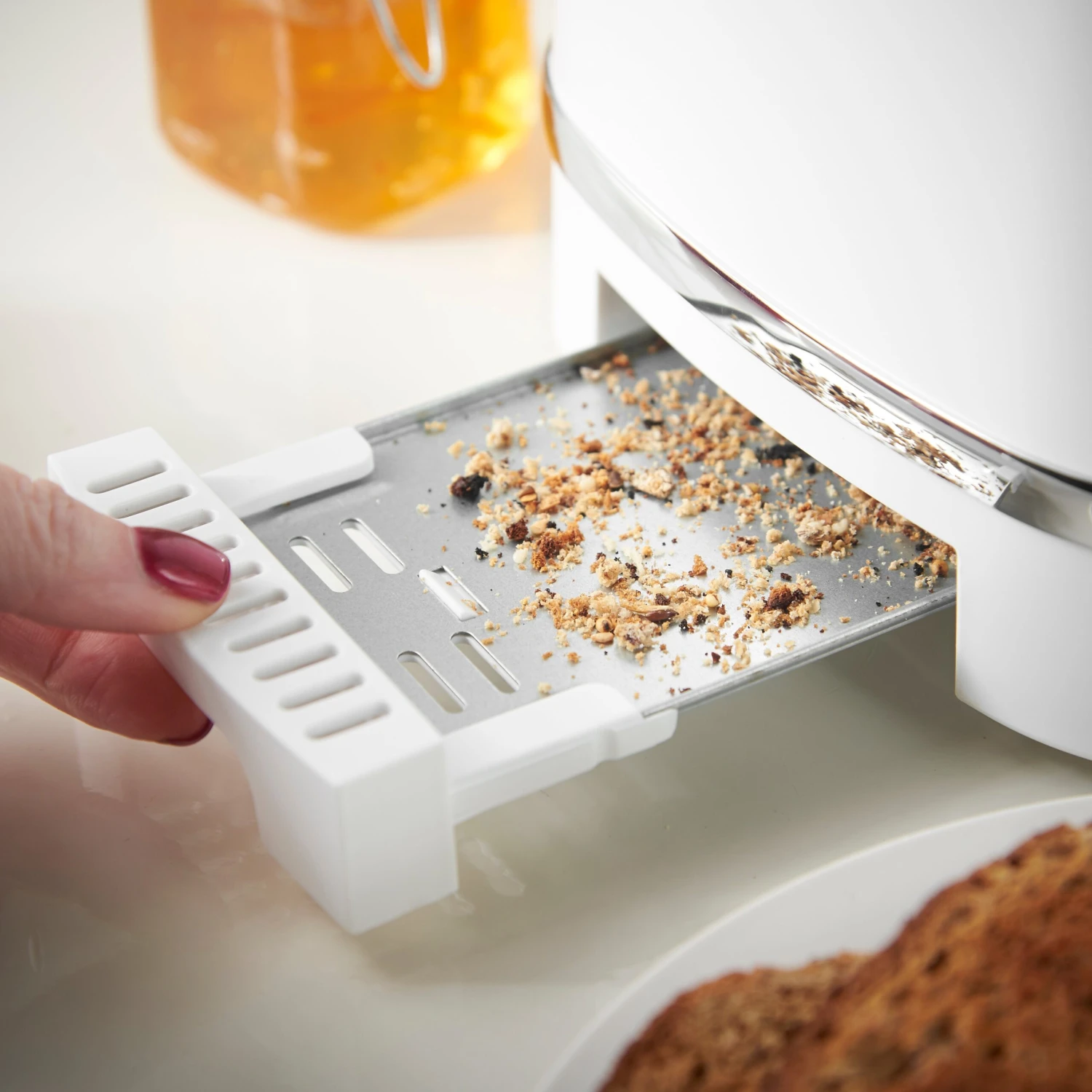 REMOVABLE CRUMB TRAY – The efficient and compact toaster also has an included removable tray, intended for catching the crumbs of your toast or other items.