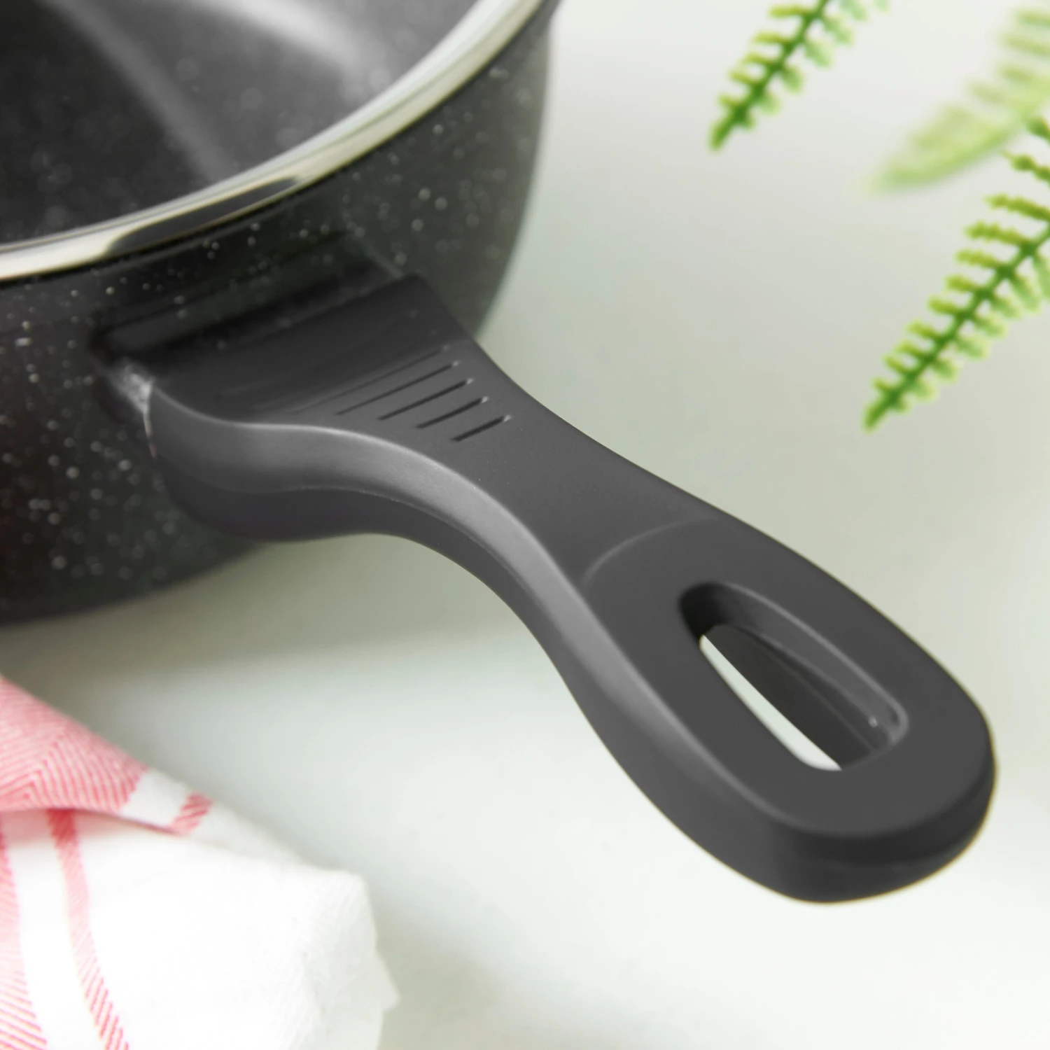 Lewis’s Sovereign Stone 20cm Scratch Resistant Easy Clean Non Stick Saucepan & Lid -Black Marble