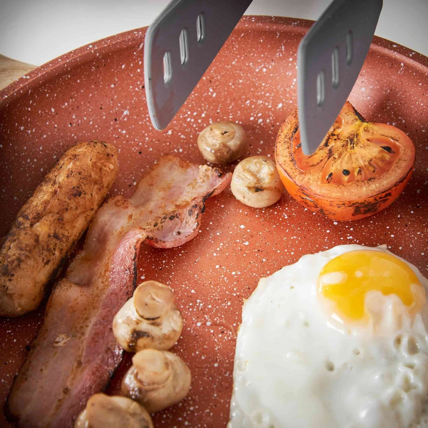This non stick pan has been constructed to prevent your food from sticking to its base. The super non-stick design is much sought after, and enhances the overall effectiveness of the pan itself. Allowing you to serve up without any need to worry about losing any food to your pan.