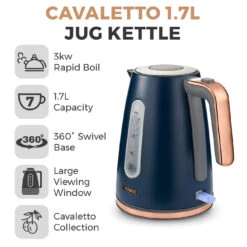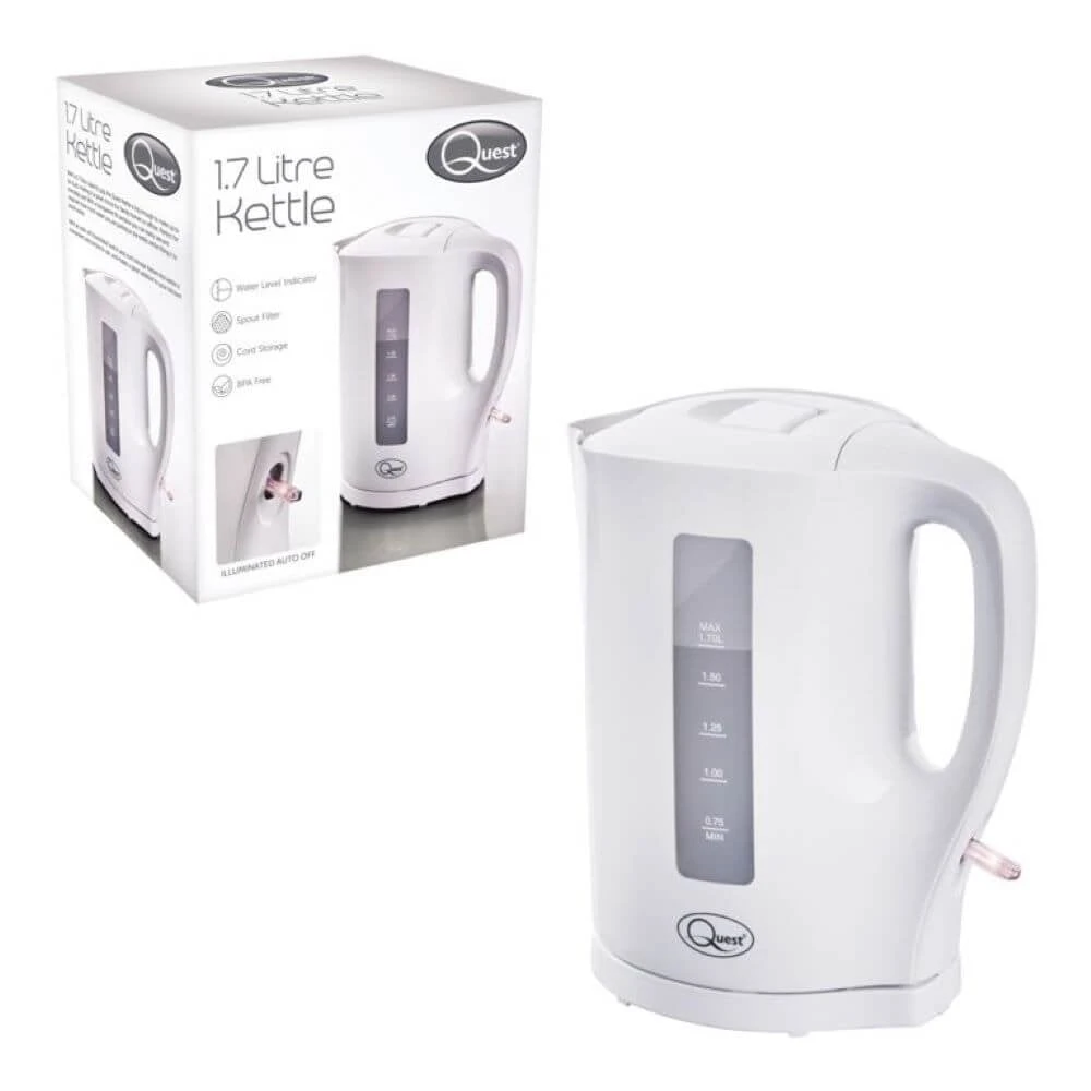 Designed to perform as well as it look, the Quest 1.7 Litre Jug Kettle is an affordable kettle for any kitchen. This kettle has an external water level indicator that allows you to measure the amount of water you need. The illuminated switch is a great addition to know when the kettle is turned on. The 2200W will swiftly head up the water and has a generous capacity of 1.7 litres. This Quest Kettle comes in a striking navy that will add a modern edge to any kitchen decor.