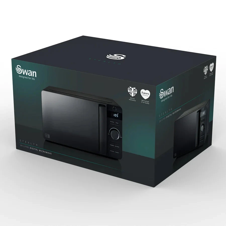 This sleek 800W Swan Stealth Microwave is the ideal microwave for anyone whos constantly on the go with busy kitchens and those who are looking to gain some high-performance technology in their kitchen without sacrificing style and design.
