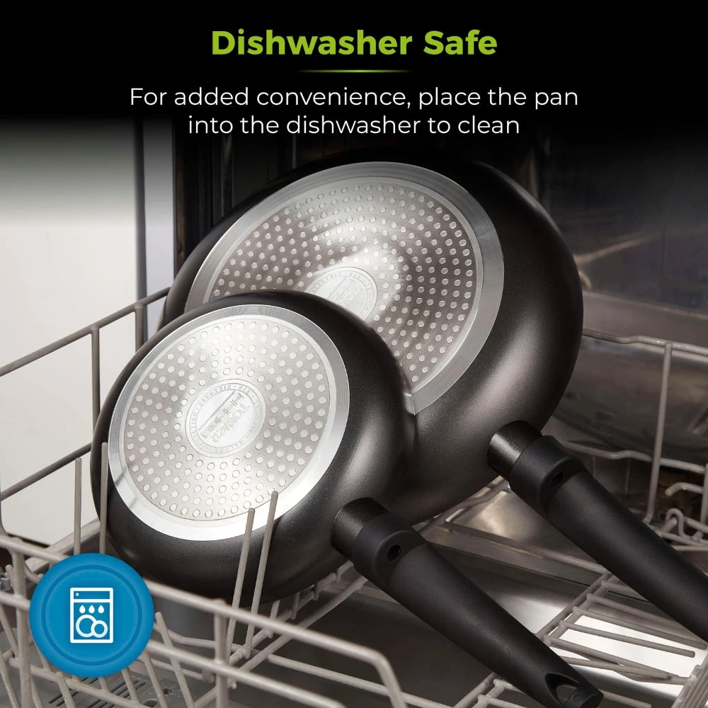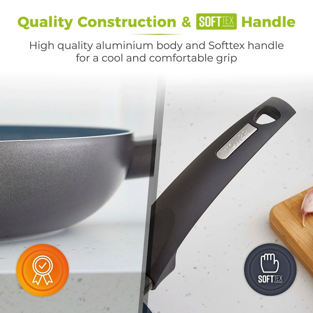 This 30cm Tower Cerasure Frying Pan is an ideal choice for healthier cooking without compromising on taste. Constructed from high-grade aluminum, it’s perfect for making stir-fries and omelets. The Cerasure ceramic non-stick coating is three times stronger than traditional materials, reducing the need for oil and preventing food from sticking. It’s also dishwasher-safe – though hand-washing is recommended to preserve the finish – and suitable for all stove types, including induction. Cerasure ceramic coating is free from PFAS, PFAO, PTFE, lead, and cadmium, making it perfect for cooks of all levels. Its bonded steel base evenly distributes heat with no hot spots, ensuring the food is cooked thoroughly. The handle has been designed with an ergonomic, phenolic Softtex handle, which stays cool to the touch for a comfortable grip. Additionally, the product and packaging are 100% recyclable.