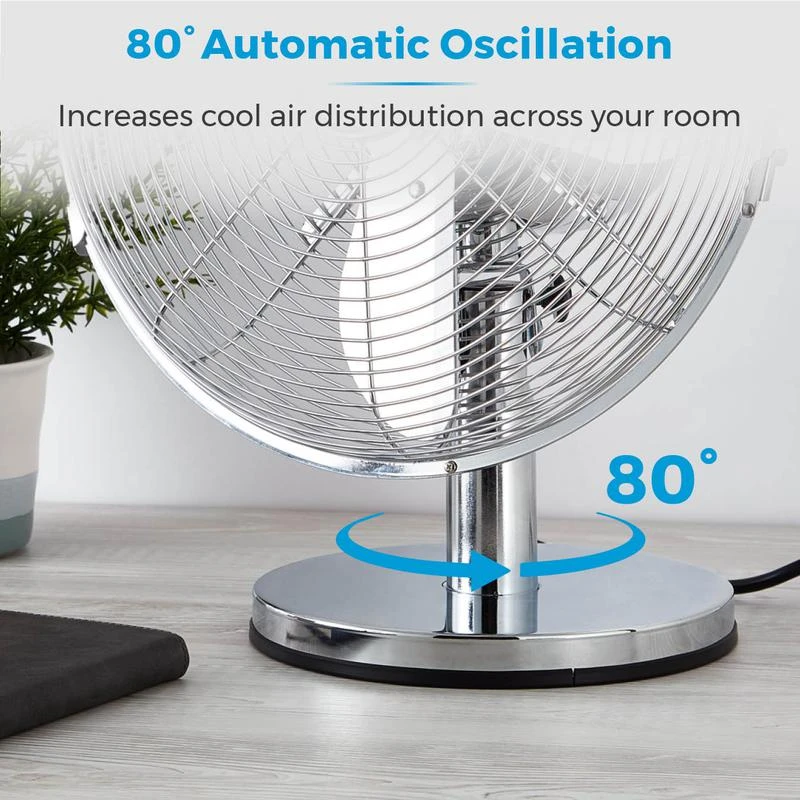 Engineered for powerful airflow and long-lasting reliable performance, this Tower 12 Desk Fan is a must-have for cooling off in the warmer months. Its durable metal structure is designed to deliver reliable cooling performance, presented in a compact size which is perfect for keeping cool at your desk, bedside or workstation. The metal quad-blades have been streamlined for more efficient air circulation, distributed over a low, medium or high speed setting to make your climate more comfortable. It also features an adjustable pivoting head and automatic left-right oscillation across an 80-degree angle to let you target the direction of airflow, ensuring the cool breeze reaches you wherever you are in the room. This desk fan is easy to assemble and clean, complete with an integrated carry handle for fuss-free manoeuvring around your home.