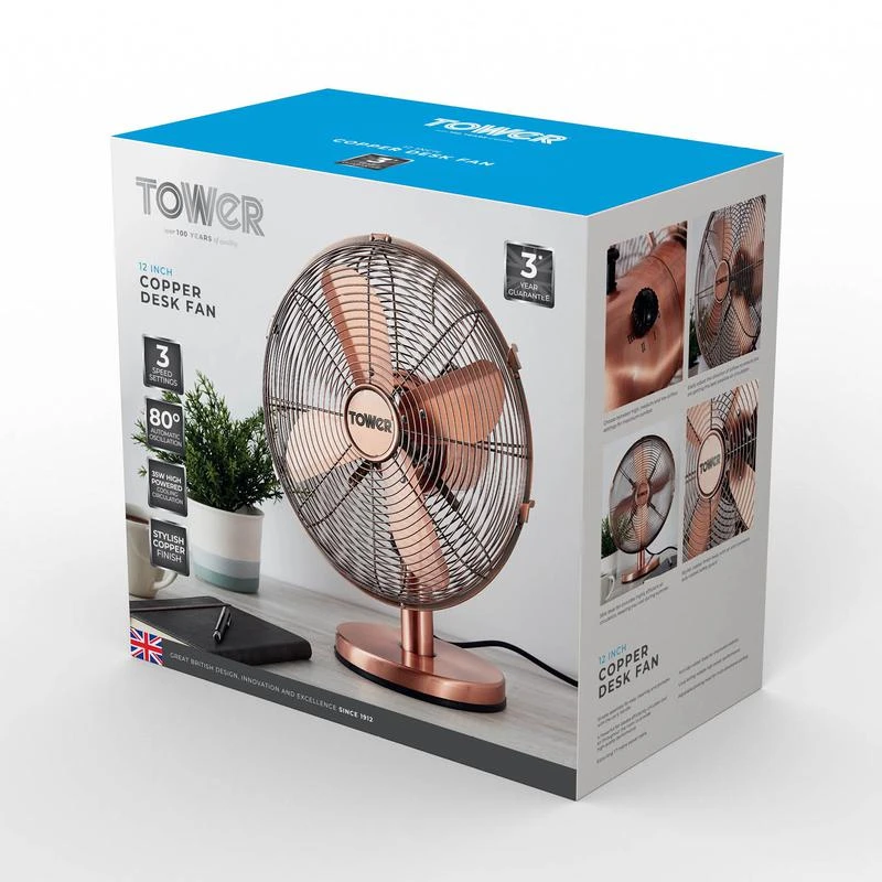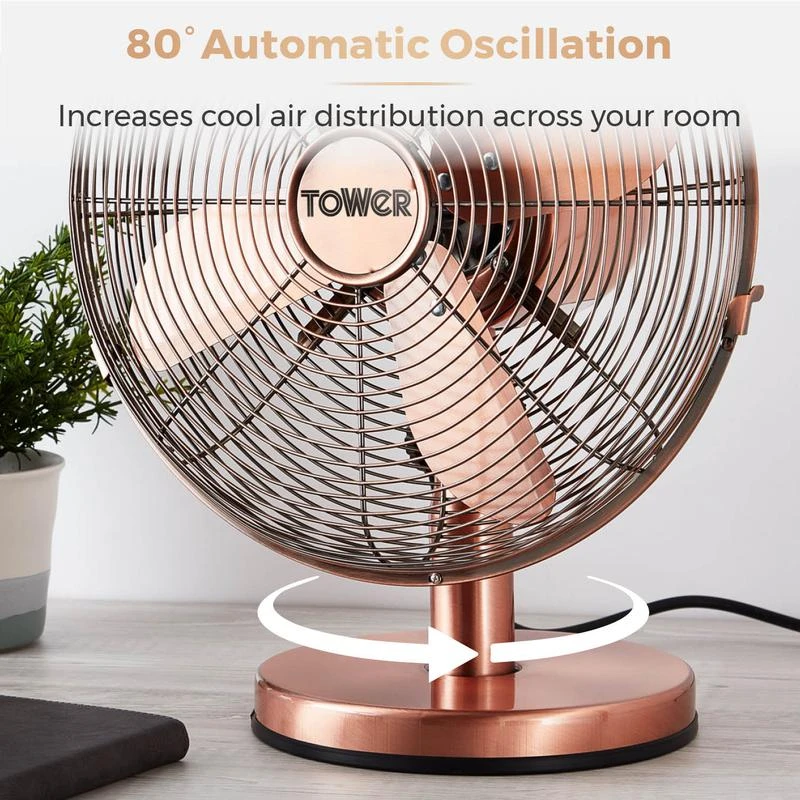 Tower Metal Desk Fan 12″ – Copper