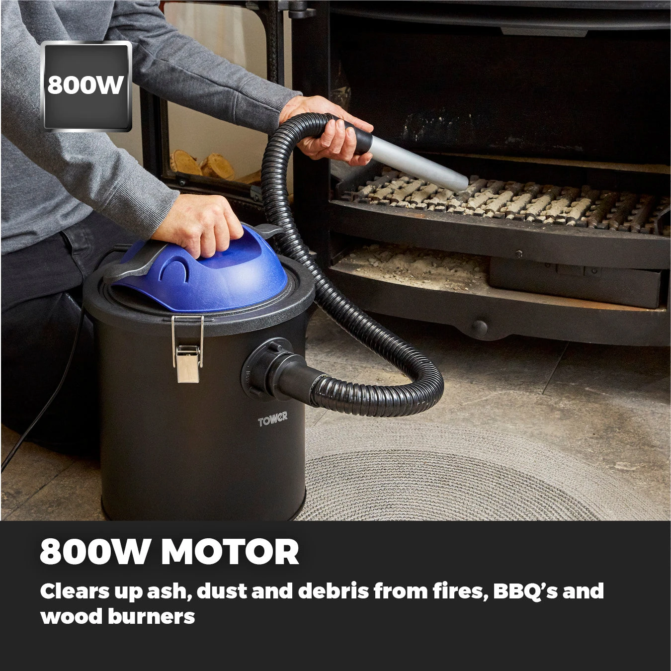 Make easy work of removing ash from your indoor or outdoor fires with this Tower ash vacuum cleaner. The powerful 800W motor offers a strong suction power of KPA17, which effortlessly sucks up hot ash below 40C and other debris from fires, BBQ’s, fire pits and wood burners. An advanced HEPA filtration system locks in the smaller dust particles, providing a more hygienic clean-up for those who suffer with allergies. For harder to reach areas, the detachable crevice tool will make quick and easy work of removing dust that builds up. All of the dust and debris is collected in the large and easy to empty 18 litre container for efficient maintenance. Ultra-lightweight in its design, this ash vacuum cleaner is easy to move around the home, with the integrated carry handle providing a comfortable grip. The extra-long 1.8 metre power cable helps you reach different areas without the need for an extension cable, while the quick release clips help store the cable away for neat storage.