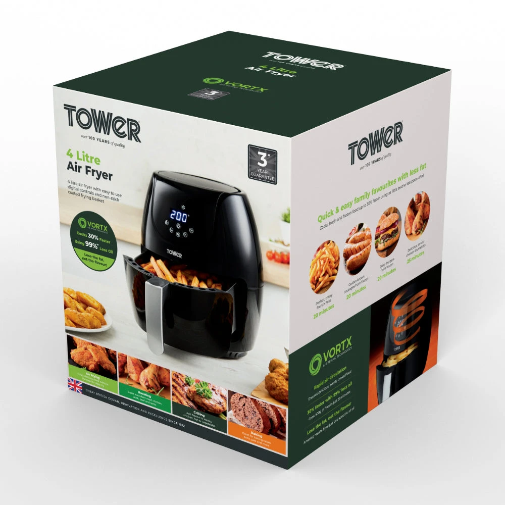 This 4 litre Tower digital air fryer is the perfect kitchen companion for those looking for a fast and convenient alternative to conventional cooking. Featuring vortx technology, all you need is a minimal amount of oil, and then the hot air rapidly circulates evenly around the air fryer, ensuring your ingredients are cooked thoroughly with a nice crispy texture, all while having 99% less fat for more healthier cooking. It can fry, bake, grill and roast for versatile cooking.