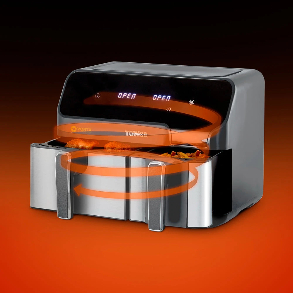 Tower Vortx Eco Duo Basket Air Fryer 8.5L – Grey
